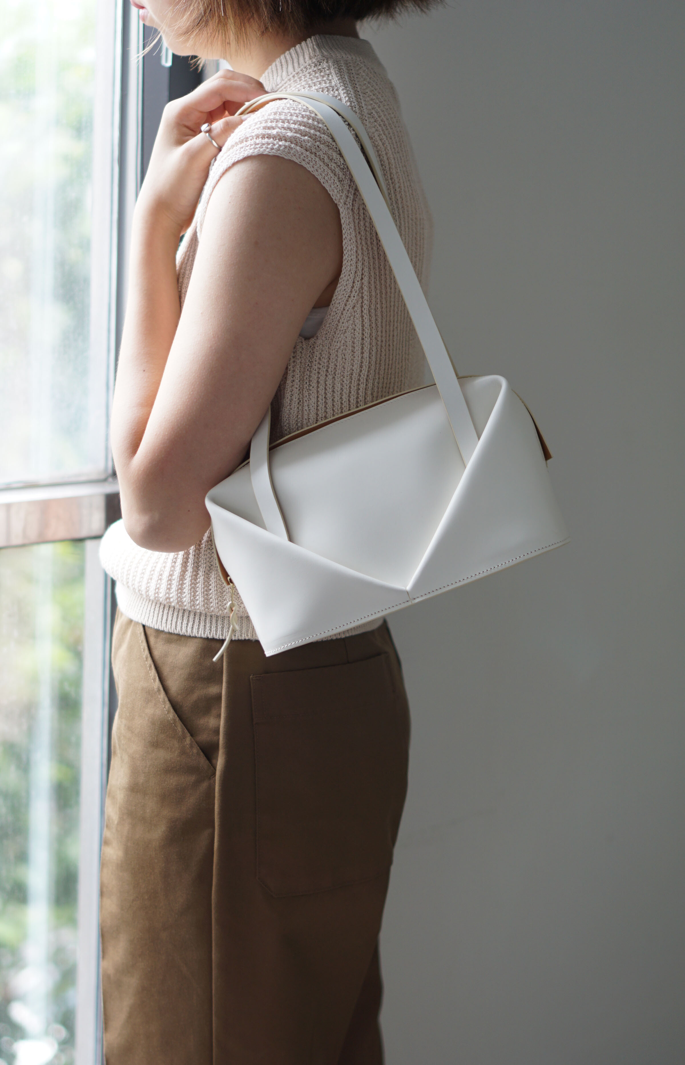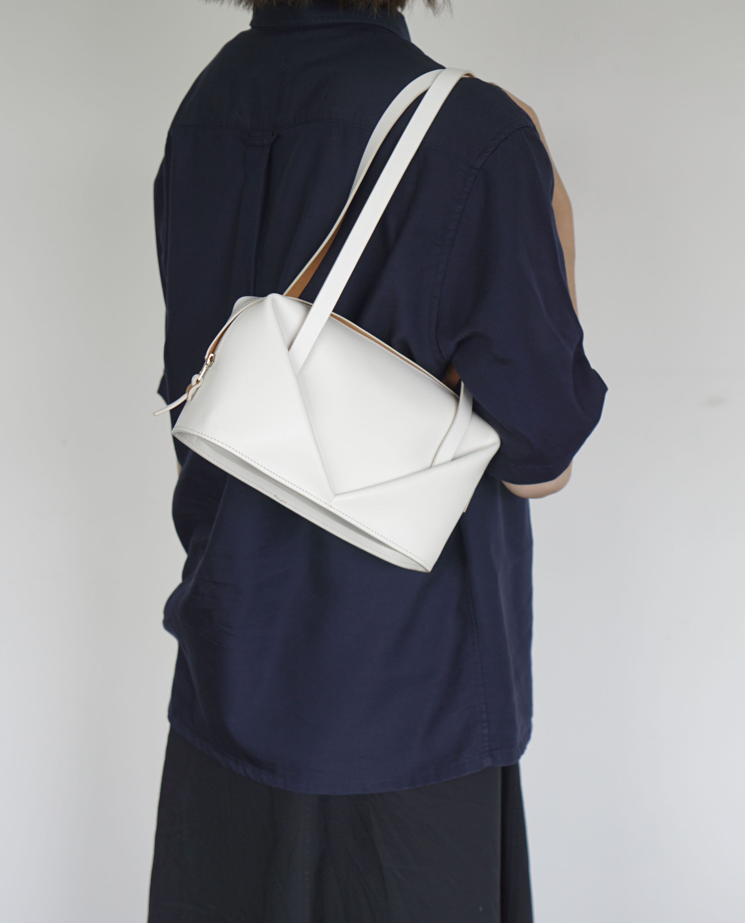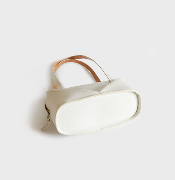 지퍼의 금속이 가방의 디자인에 방해가 되지 않도록 히든지퍼 디테일을 적용하였으며, 가방 내부에는 안감을 추가하여 부드러운 사용감을 느끼실 수 있습니다.